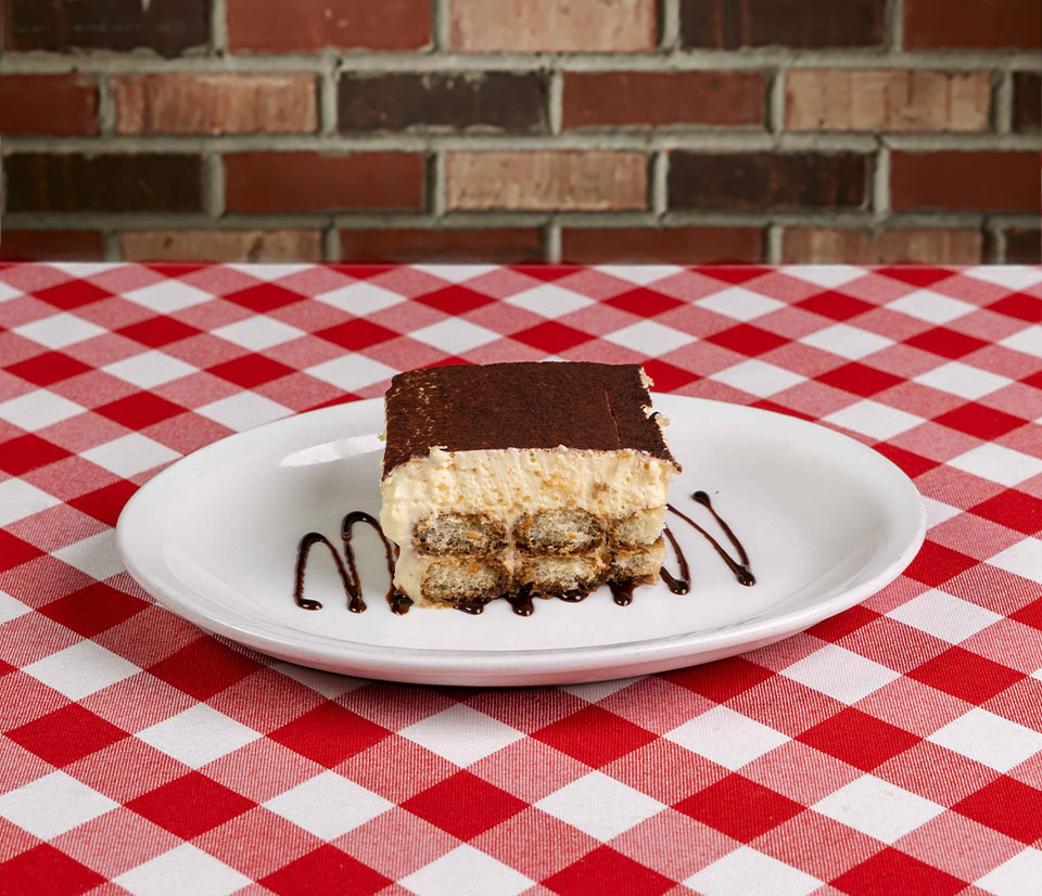 Espresso soaked ladyfingers, layered with sweet mascarpone. Finished with a dusting of cocoa powder.