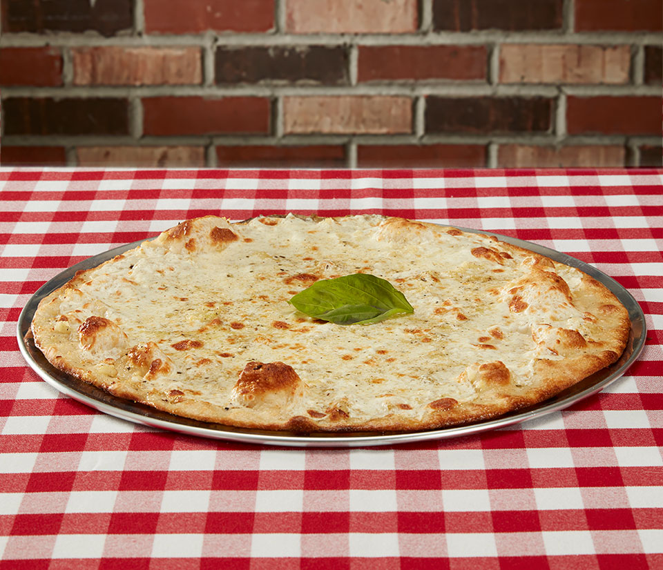 Extra fresh mozzarella, garlic, and an olive oil drizzle and garnish of basil. Topped with our signature cheese and spice blend.