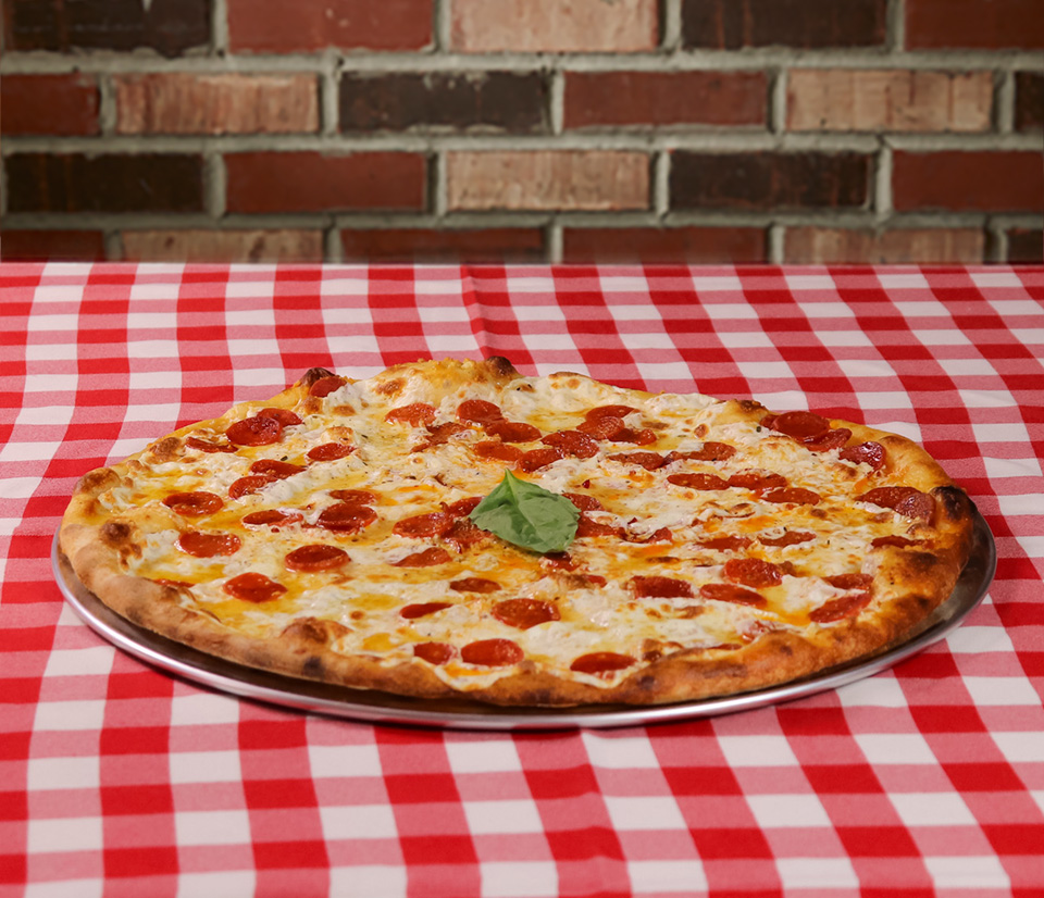 Extra pepperoni and garlic on white pizza, drizzled with Mike’s Hot Honey®.