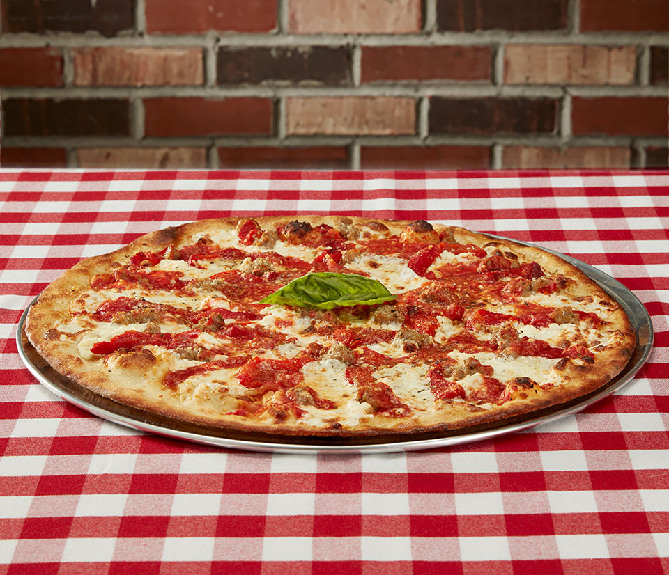 Roasted red peppers, creamy ricotta cheese and hand-pinched italian sausage, atop our Traditional Pizza.